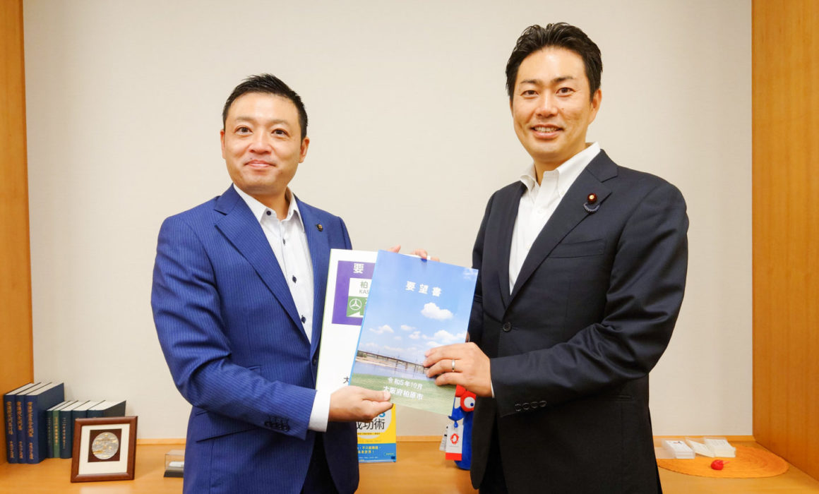 ふけ正浩 柏原市長が国会事務所にご来室され、河川空間のオープン化、西名阪スマートIC整備、GIGAスクール構想における整備端末の更新費用等幅広く国政に関するご要望をいただきました。